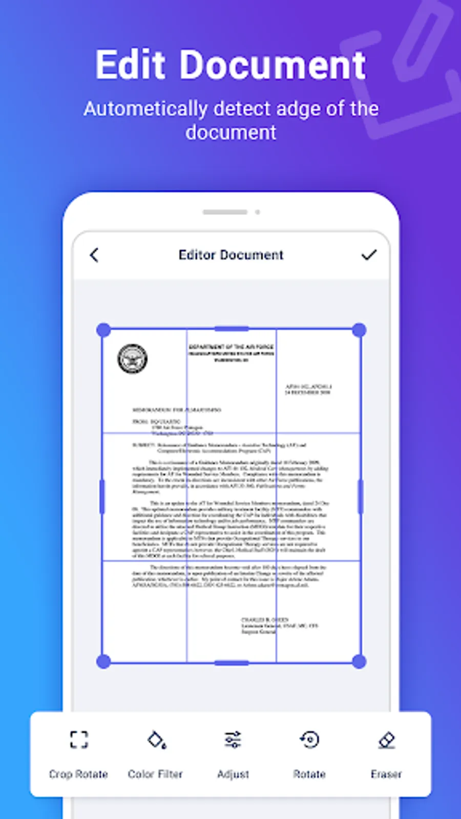 Smart cropping and auto enhancing make the texts and graphics look clear and sharp.