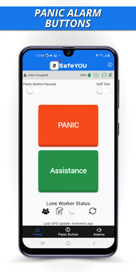 2SafeYOU App gives users the ability to raise a panic alarm when in distress. This can result from interaction with the main screen of the App, or by pressing a physical panic button (2SafeYOU Bluetooth ID Badge - the smart ID cardholder or 2SafeYOU Compact Panic Button) communicating with the Smartphone. The 2SafeYOU cloud-based software solution will recognise the panic alarms and dispatch alerts instantly to the relevant parties to help you.