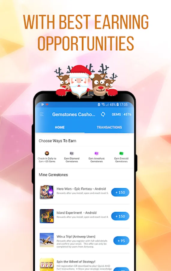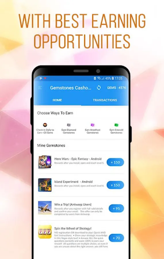 We care for our users, so we made lot of app features to generate gemstones and earn money.