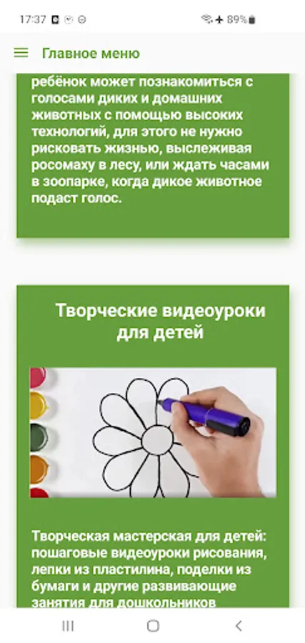 - Creative workshop for children: step-by-step video drawing lessons, plasticine modeling, paper crafts and other educational activities for preschoolers