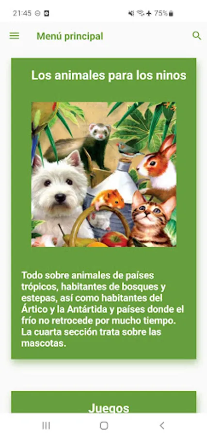 Talking to children about animals today is not so easy. It is necessary to use exactly the conditions in which modern children grow up: the Internet, videos, photos, but we must also not forget about the main weapon from the arsenal of the past - a bright artistic word. We provide this cognitive mobile application to our younger generation, in it you can find the most interesting games, activities and projects that reveal the essence of studying the world around us in an accessible and exciting way. With pleasure, children learn the voices and sounds that wild and domestic animals make, guess thematic riddles, read stories about our minor friends (even if they are huge elephants and whales).