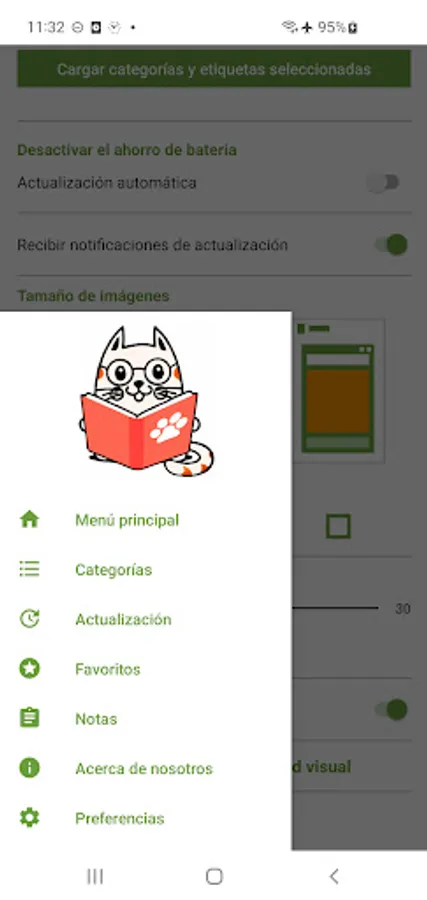 Internet connection is required for the first download after running the app. Check the necessary categories on the settings screen.