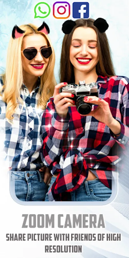 Make your pictures look enormously in high-clarity and opacity using the ultimate Zoom Camera apps for free that allows you to boost clarity of ambiguous pictures with all ease and give them a large perfect resolution, as well this zoom in camera get the chance to enhance photos with a tons of lovely stickers such as: Cat & dog face stickers, rabbit stickers , cute heart & flower crown stickers , trendy haircuts stickers , also with this new generation of long distance camera enables to decorate your favorite pictures with a cool bundle of motion camera and .