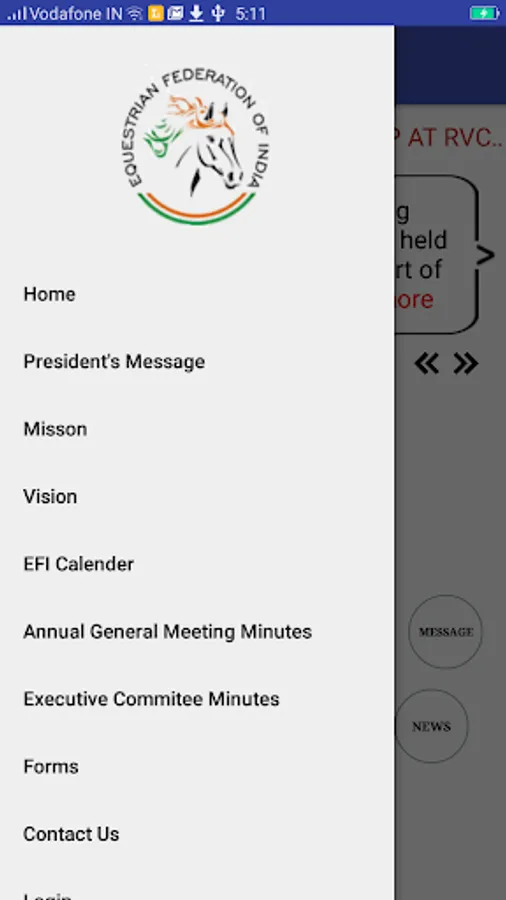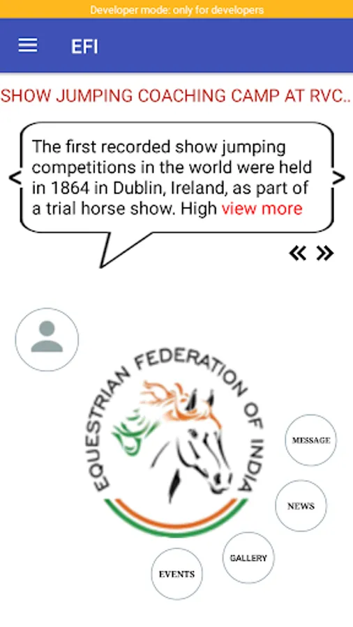 Since 1967 the development of equestrian sport in India has been guided and promoted by the country's governing body, the Equestrian Federation of India founded by a group of people driven by a mutual passion for horses and equestrian sport. The EFI now has over 1030 members, regularly sends riders to compete abroad and has spread its influence throughout the Asian Continent. National and International competitions in Dressage, Show Jumping, Eventing, Tent Pegging and Endurance are run under the auspices of the EFI, which itself is affiliated to the sport’s International governing body, the Federation Equestre Internationale (FEI), based in Switzerland. Equestrian sport is concentrated in certain areas of India these are Delhi, Meerut, Bangalore, Chandigarh, Jaipur, Kolkata, Chennai, Pondichery, Pune, Mumbai and Bhopal.