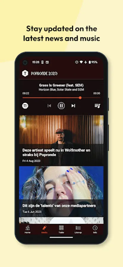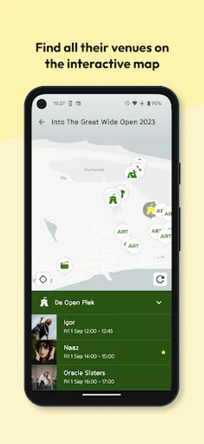 All your favorite festivals in one great app. For instance Dekmantel, Le Guess Who?, c/o pop, Roadburn, Into The Great Wide Open, Unsound, Haldern Pop, Rewire, MENT, Forbidden Forest, Lente Kabinet, Blijdorp Festival, Motel Mozaique, Popronde, STRP, Left Of The Dial, Dynamo Metalfest, Metropolis, Vestrock, Museum Night The Hague, Museum Night Leiden, Spring, Noorderzon, Amsterdam Fringe, TT Festival. Including line-up, timetables, interactive maps and smart push notifications.
