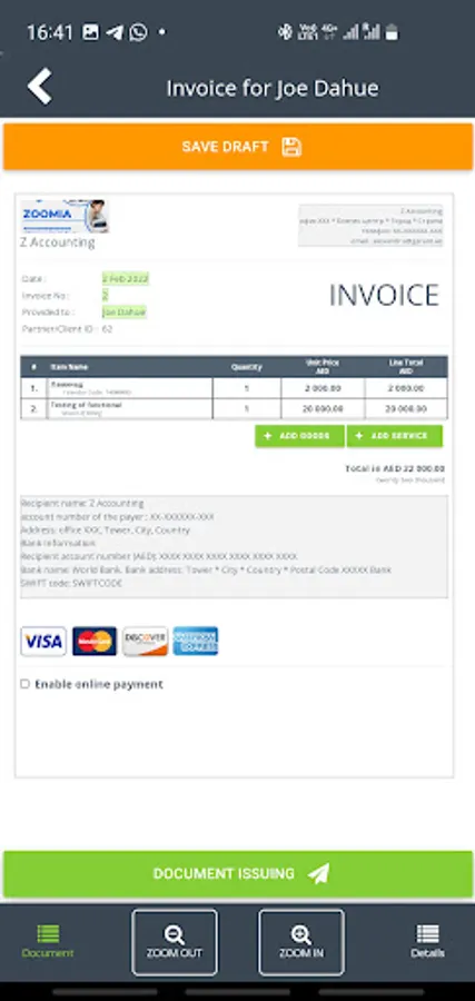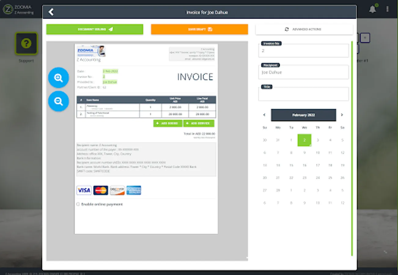 Accounting modules are delimited by different access levels, where some Employees of the company can be granted with relevant usage (invoicing, accounting management, customer balance management, audit reports, employee expenses management). Furthermore, accounting provides multicurrency, where rate synchronizes with world currency Market, or can be based on own currency management.