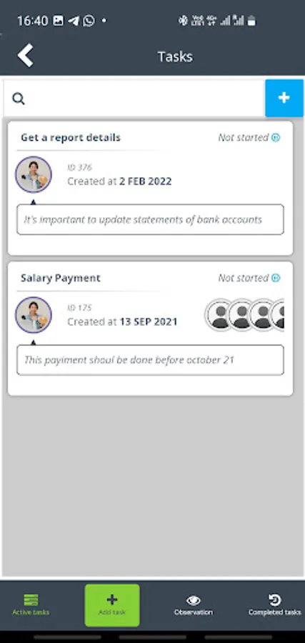 The functionality of Task Management module is provided for both corporate and private usage. This is a smart solution for managing any number of processes with links to other profiles, as on executors, supervisors, task creators or customers. On each stage of task process, all relevant participants receive notifications to user’s devices. This module is a great solution for time management, even for private usage. The functionality of Task Management module is provided for both corporate and private usage. This is a smart solution for managing any number of processes with links to other profiles, as on executors, supervisors, task creators or customers. On each stage of task process, all relevant participants receive notifications to user’s devices. This module is a great solution for time management, even for private usage.