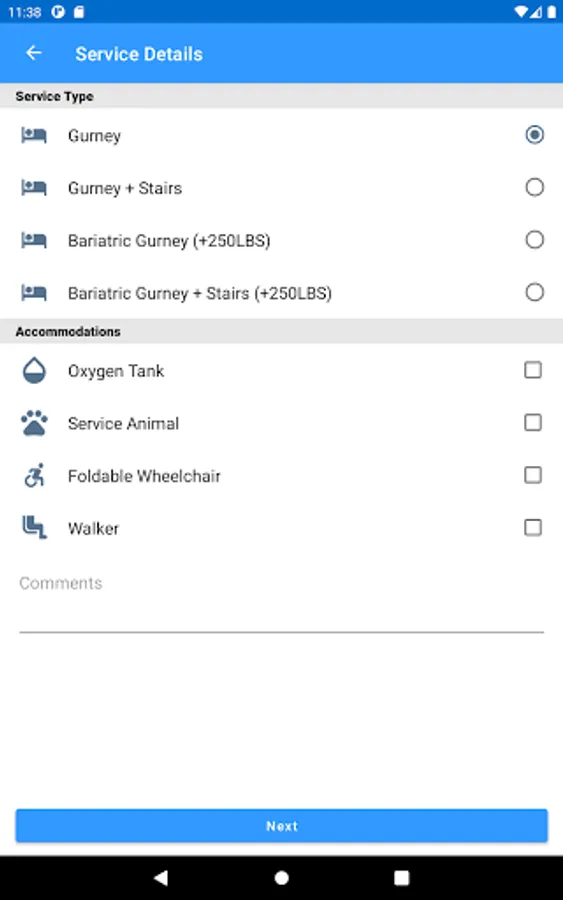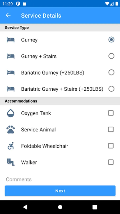 Zoomies specializes in gurney/stretcher transportation of passengers. We are the premier app for bed bound patients, with decades of experience in the Medical Transportation industry. We transport patients are unable to travel by any other means but stretcher, down and up stairs, bariatric patients and more.
