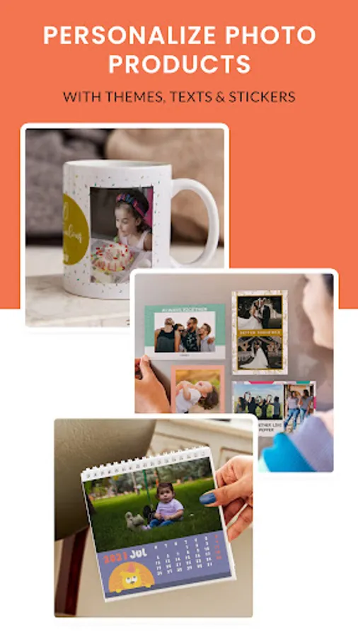 We’re the experts at creating custom print products with the click of a button. Our easy-to-use app allows you to take a photo, print it on a product, and have it sent directly to your doorstep or anywhere in India. It could be a calendar for the kitchen, a new mug for work, and a photobook for your anniversary all at the same time if you want to. The choice is yours!