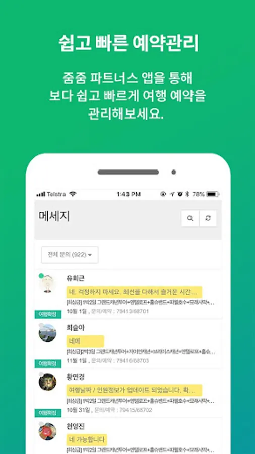 With the Zoom Partner application, you can communicate with the traveler in real time, confirm the reservation, and view the reservation list at a glance.