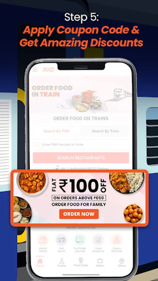 Zoop App assists you to order food delivery in trains from top restaurants at railway stations. This online train food booking service is available for all railway stations. This railway food order App is extremely useful, and it works in all android devices and highly beneficial for travelers.