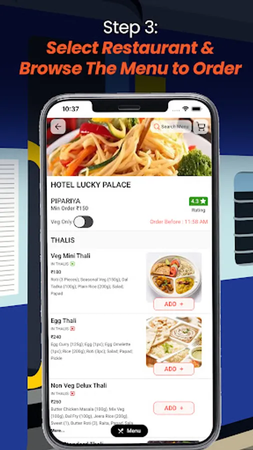 Order food in train for delivery at all major stations. Online meal in train is not just limited to few special trains but covers all running trains. Now don’t just crave for those special meals on train but book food order in train in few simple clicks.