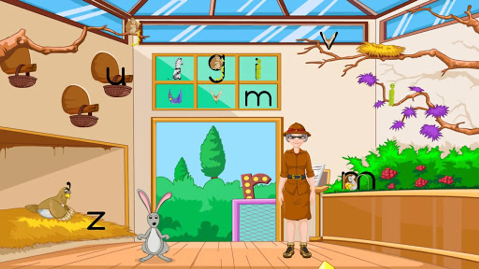 If your child cannot find the other letters, remind them to click on Zoophonia. She’ll look around the barnyard and tell the child how many to locate. She’ll give a hint by Signaling and sounding the missing letter (Picture, Merged or plain).