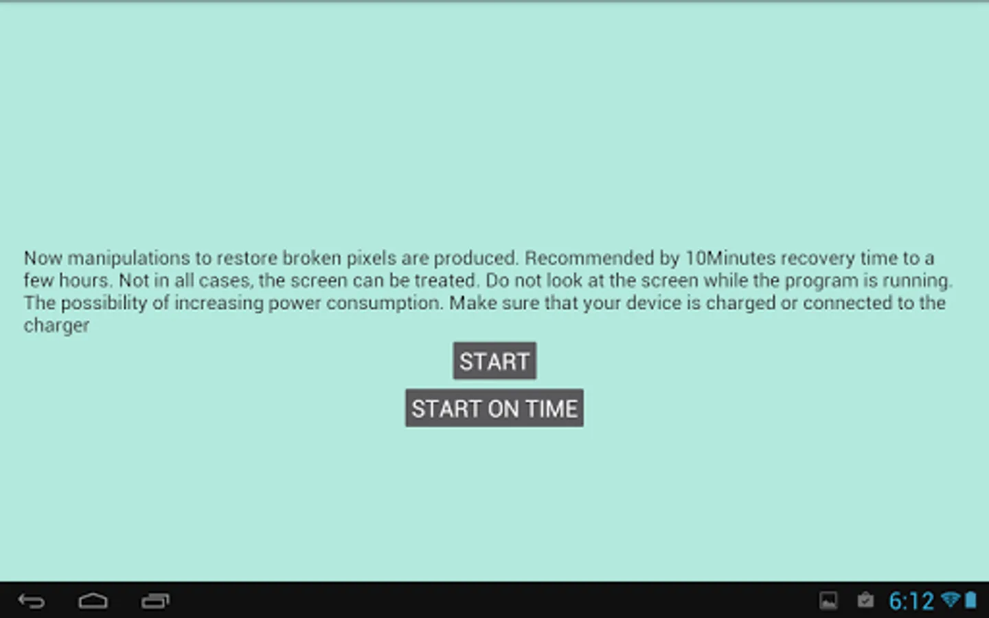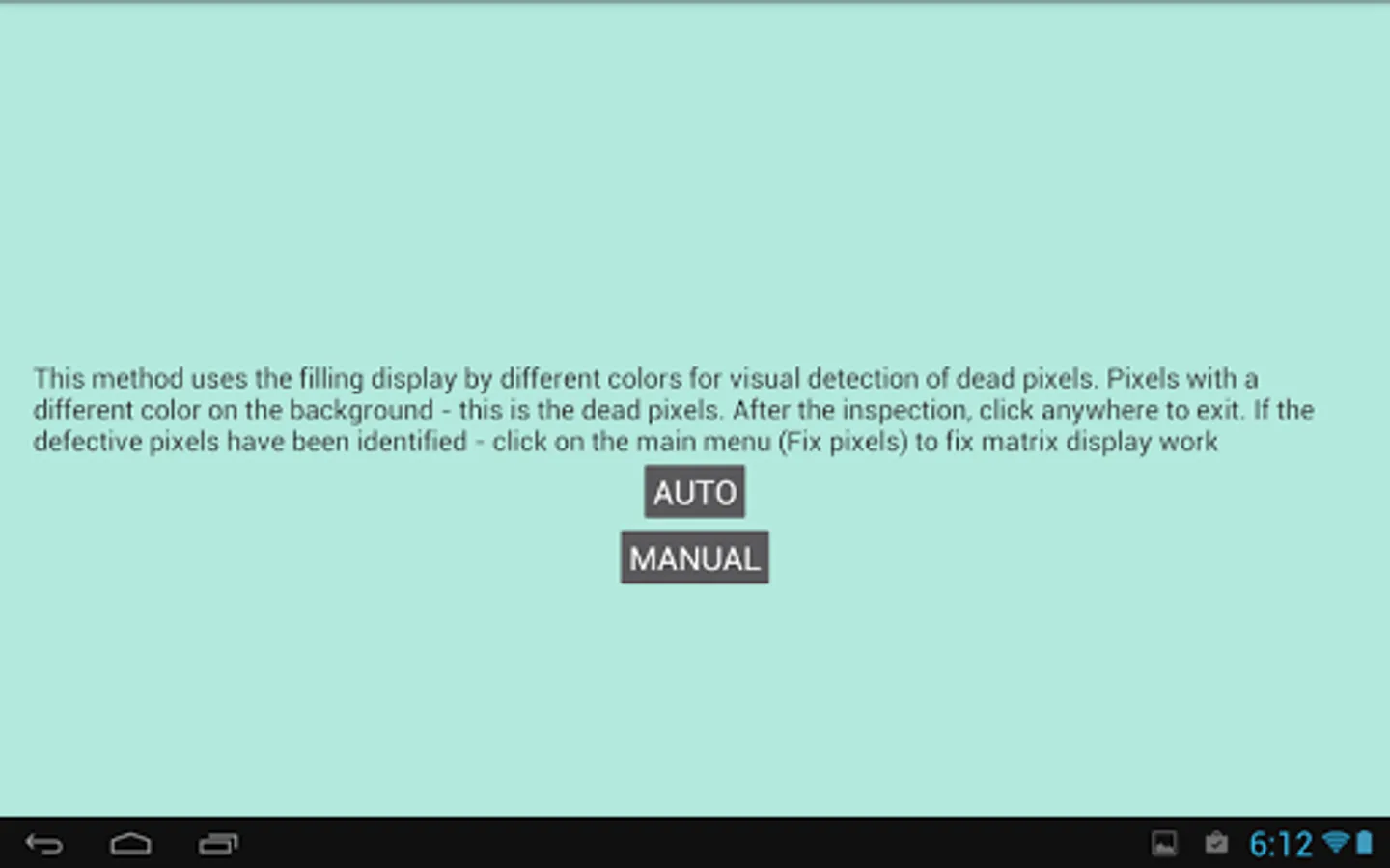 If you detect any stuck or dead pixels you will be able to try to cure them. Provide easy way to fix the stuck pixel. The program will try to use different means for the treatment of stuck pixels. Also works for screen burn-in. Start and wait on the smartphone or tablet this app until the dead pixel or stuck pixel has been repaired or unstuck.