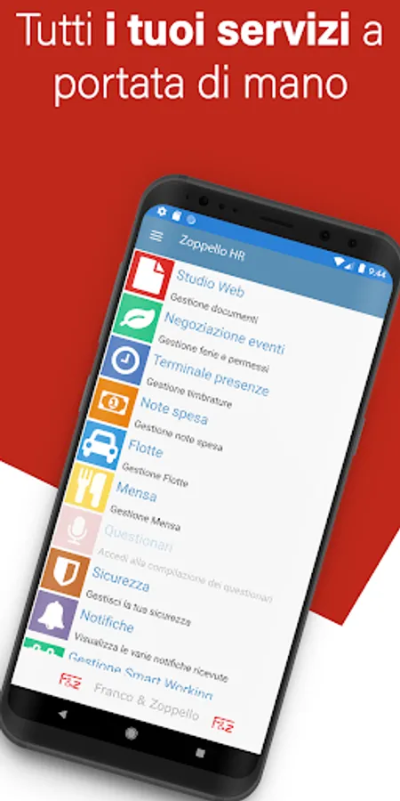For employees of customers who use the software Franco & Zoppello this app allows you to use the following features:
