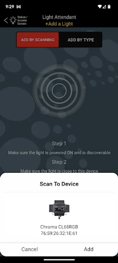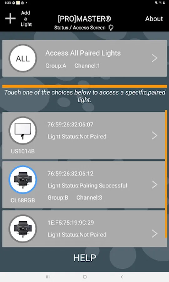 Note: This app only works with ProMaster LED lights specifically designated for use with the Light Attendant app. Please see your light's instructions for more details, to ensure it is compatible.