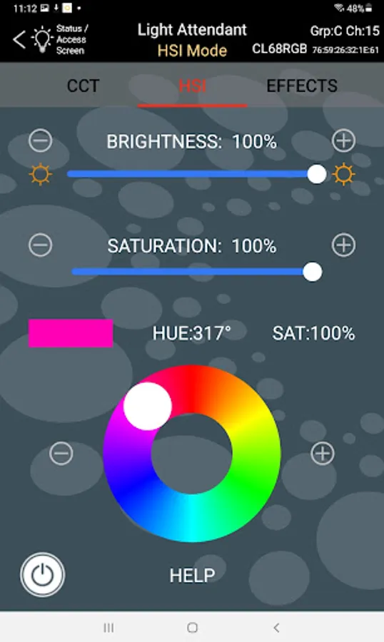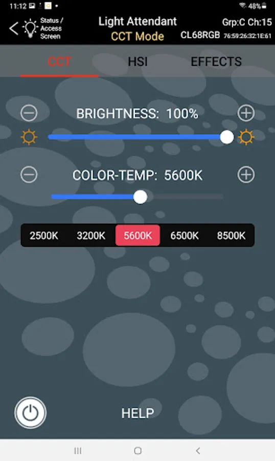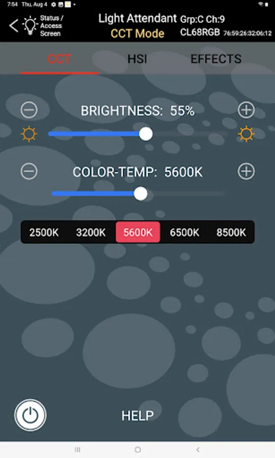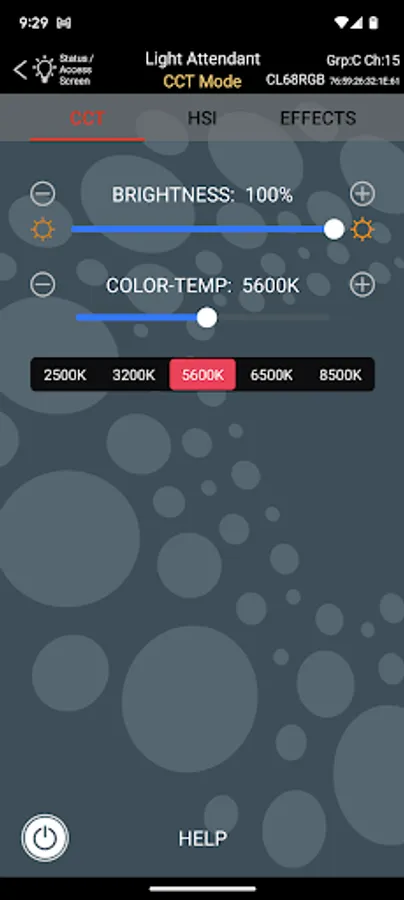 When working with multiple LED lights this app offers two methods for choosing which lights you are controlling. The first method is a traditional use of Groups and Channels. The second method lets you choose a specific light, regardless of its Group or Channel setting. Using the second method, Light Attendant will automatically tailor its options to the specific light you are using (such as color temperature range). You can easily switch back and forth between these two methods anytime you like.