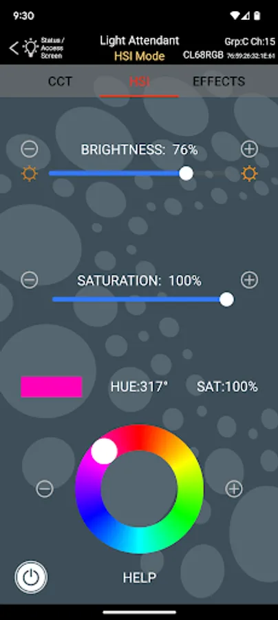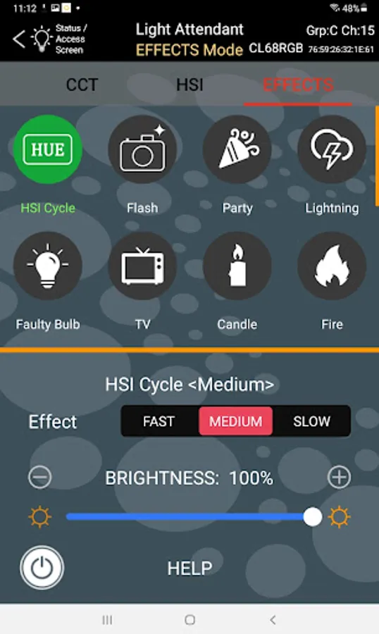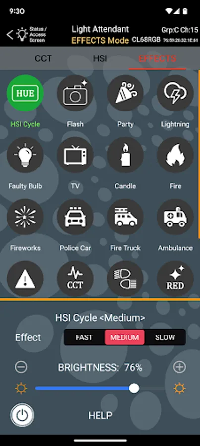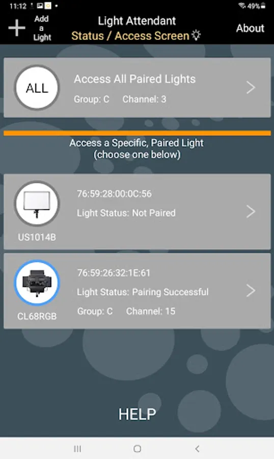 Connecting with each light is easily accomplished using Bluetooth TM technology and only takes a few seconds. Once connected, Light Attendant provides a full range of controls for each light via three main modes: