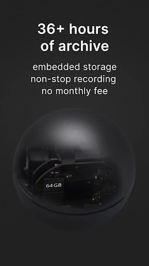 Embedded storage for 64GB keeps 36+ hours of video in High-Quality locally, regardless of the WiFi link. No subscription fees. No missing moments.