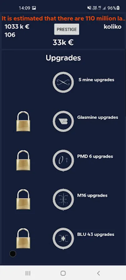 Manage your landmine factories. Research new mines, upgrade the existing ones.