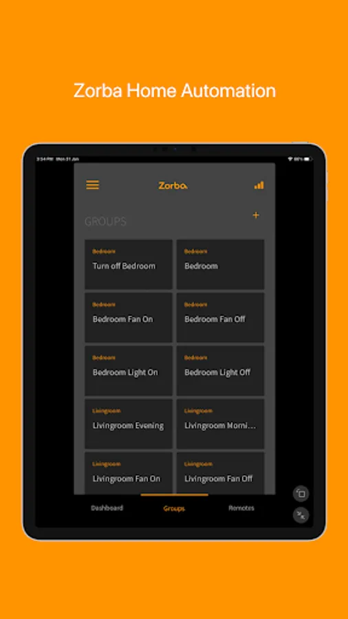 The app is for Home automation control. Zorba manufactures its own hardware for Home automation to control lights, fans, AC and other home appliances. We configure and control the appliances using the mobile app. The appliances can operate from anywhere in the world if connected to the internet .