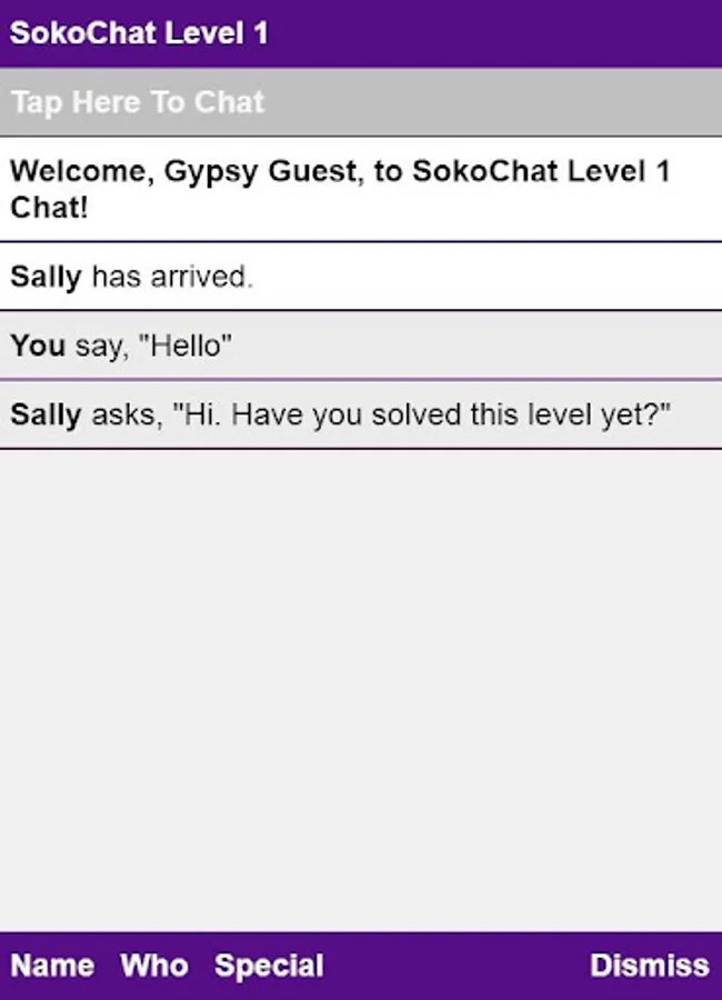 Powered by a game engine modeled after PuzzleScript, SokoChat is based on the ever popular computer game, Sokoban (倉庫番 sōko-ban, "warehouse keeper"), a type of puzzle game in which the player pushes crates or boxes around upon a warehouse floor, trying to get them to storage locations.