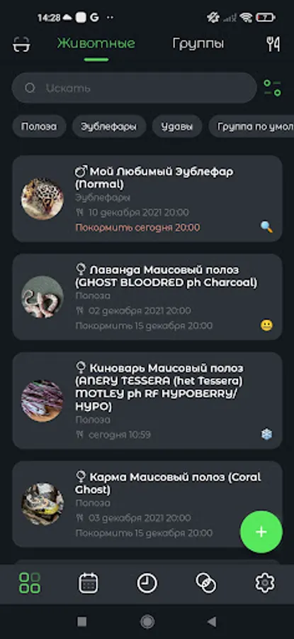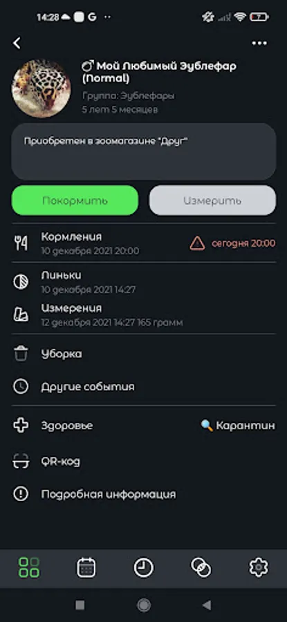 Obesity is one of the most common reptile diseases. The application will help you meet the required feeding intervals and does not offer food more often than necessary. When it's time to feed, the app will send a notification.