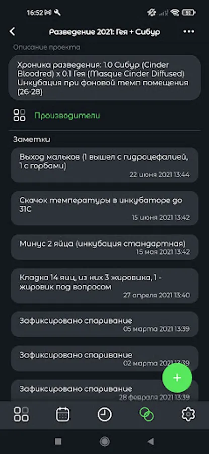 Project log helps you to understand your experience, especially if something went wrong. You can record all your breeding activities.