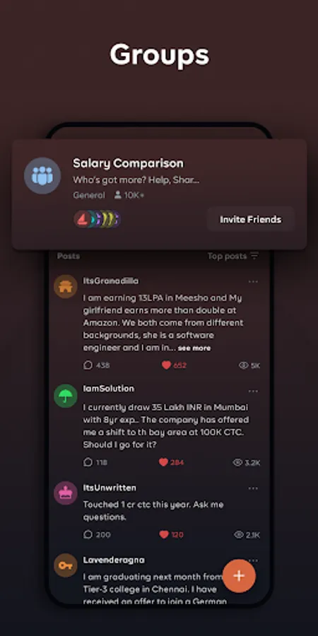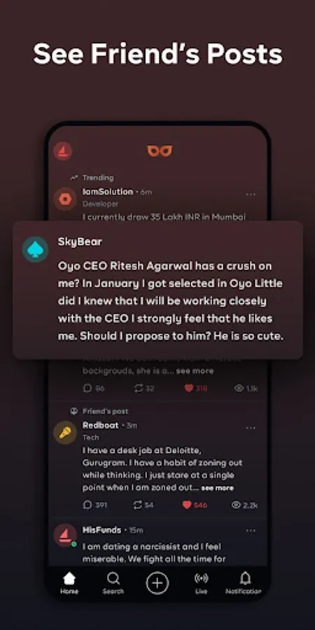 👉 Feed – See what your friends are posting, trending posts and topical posts anonymously on your feed