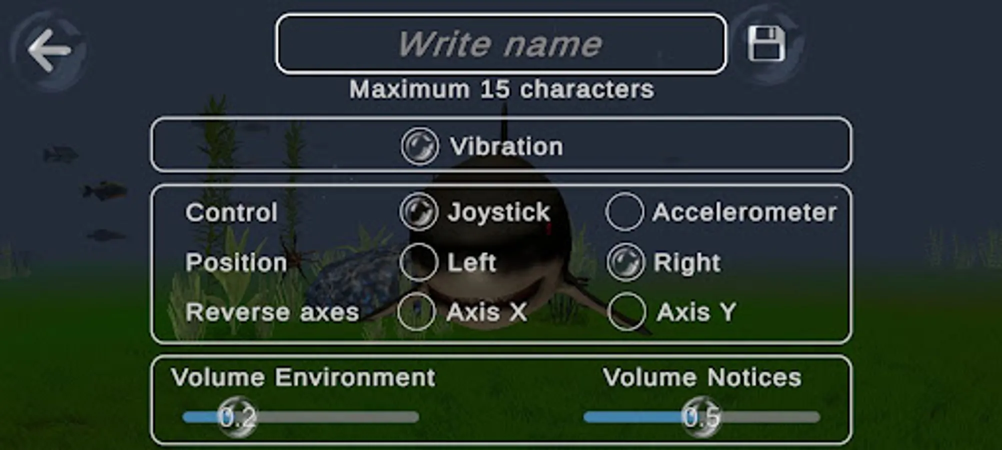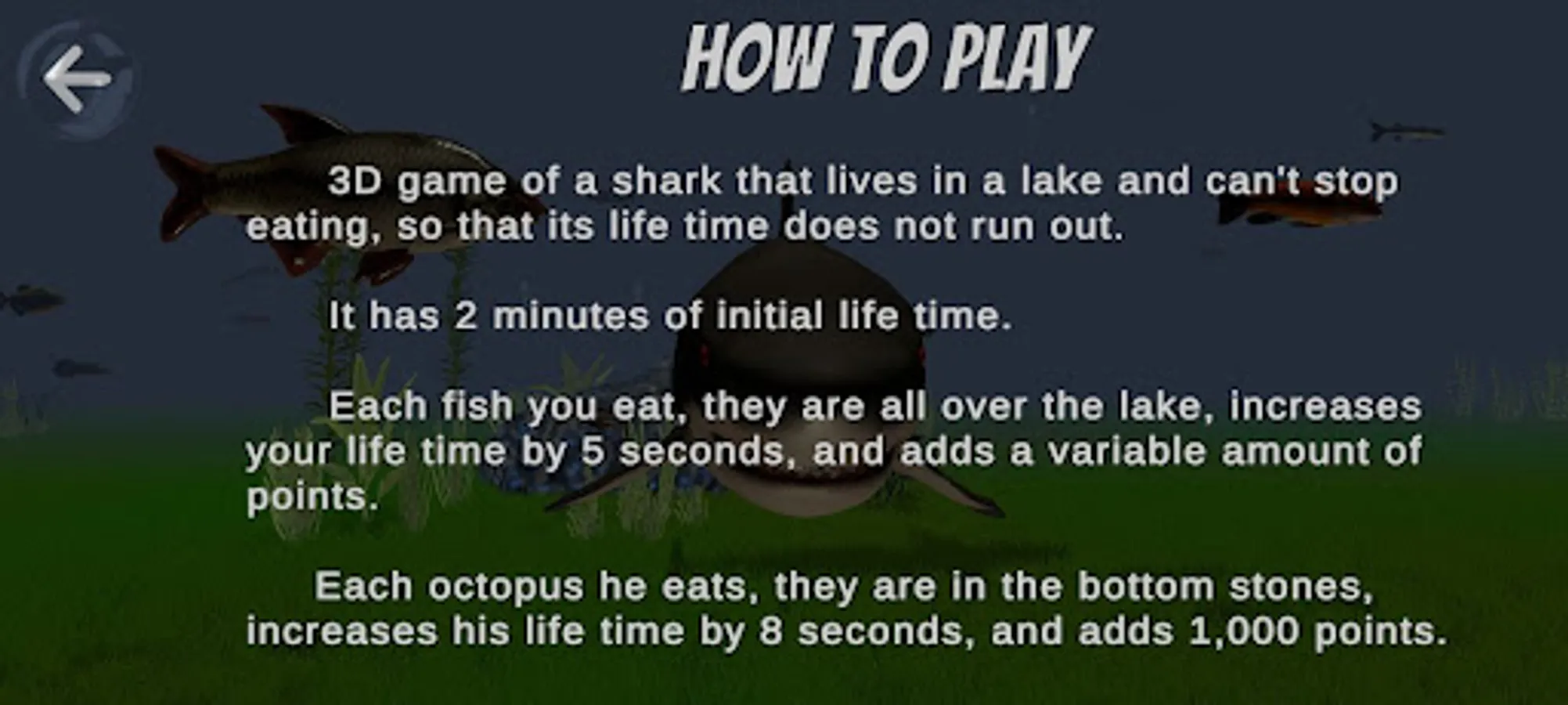 3D game, of a shark that lives in a lake and can not stop eating, so that its life time is not exhausted.