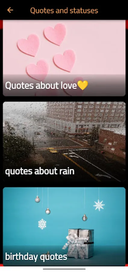 The app offers a range of options for users, allowing them to browse and choose statuses and quotes based on mood, preference, or special occasions. Users can also add their favorite statuses and quotes to their list for easy access later.
