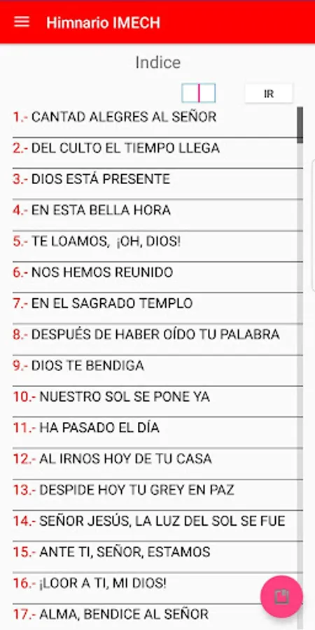 full hymnal of the Methodist Church of Chile, consisting of congregational hymns, anthems of the federations of the Methodist Church of Chile and selection of hymns of the Wesleyan tradition.