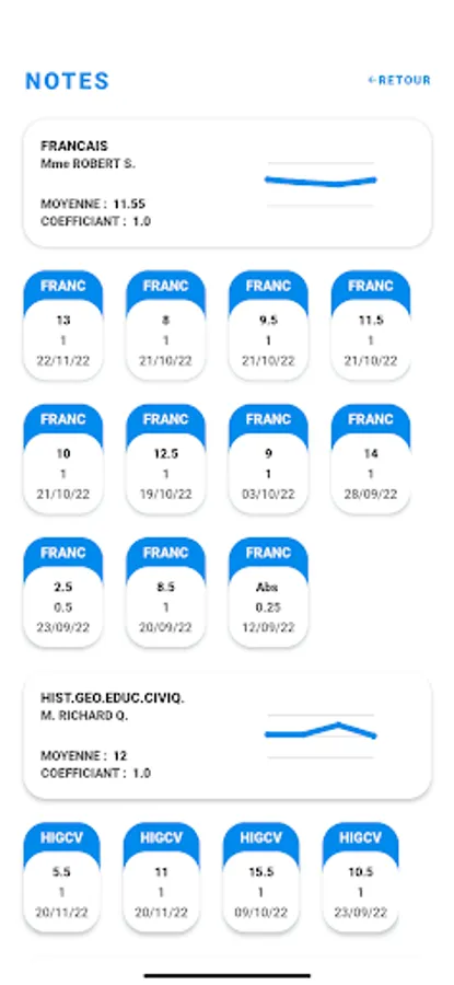 Your general average is automatically calculated according to your direct school grades and your data is saved on your device! Great for keeping track of your notes!