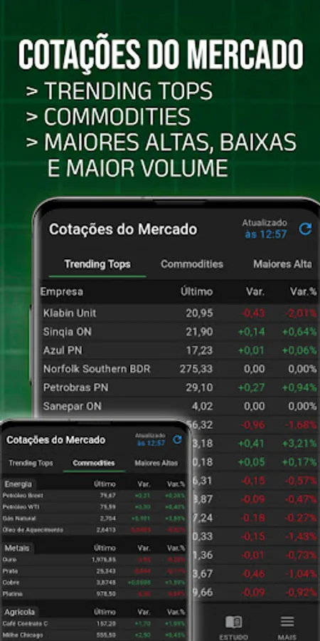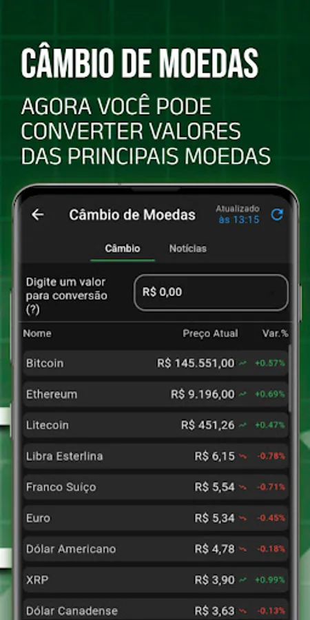 👍 Get real-time quotes* on stocks, BDRs, real estate funds (FIIs), ETFs, options, currencies and indices;