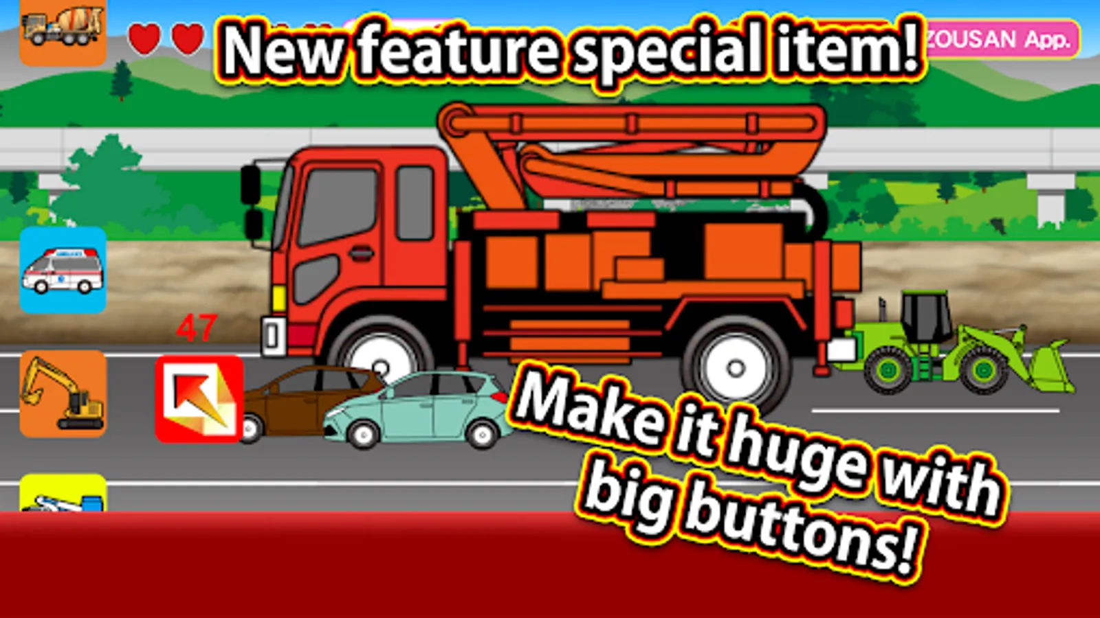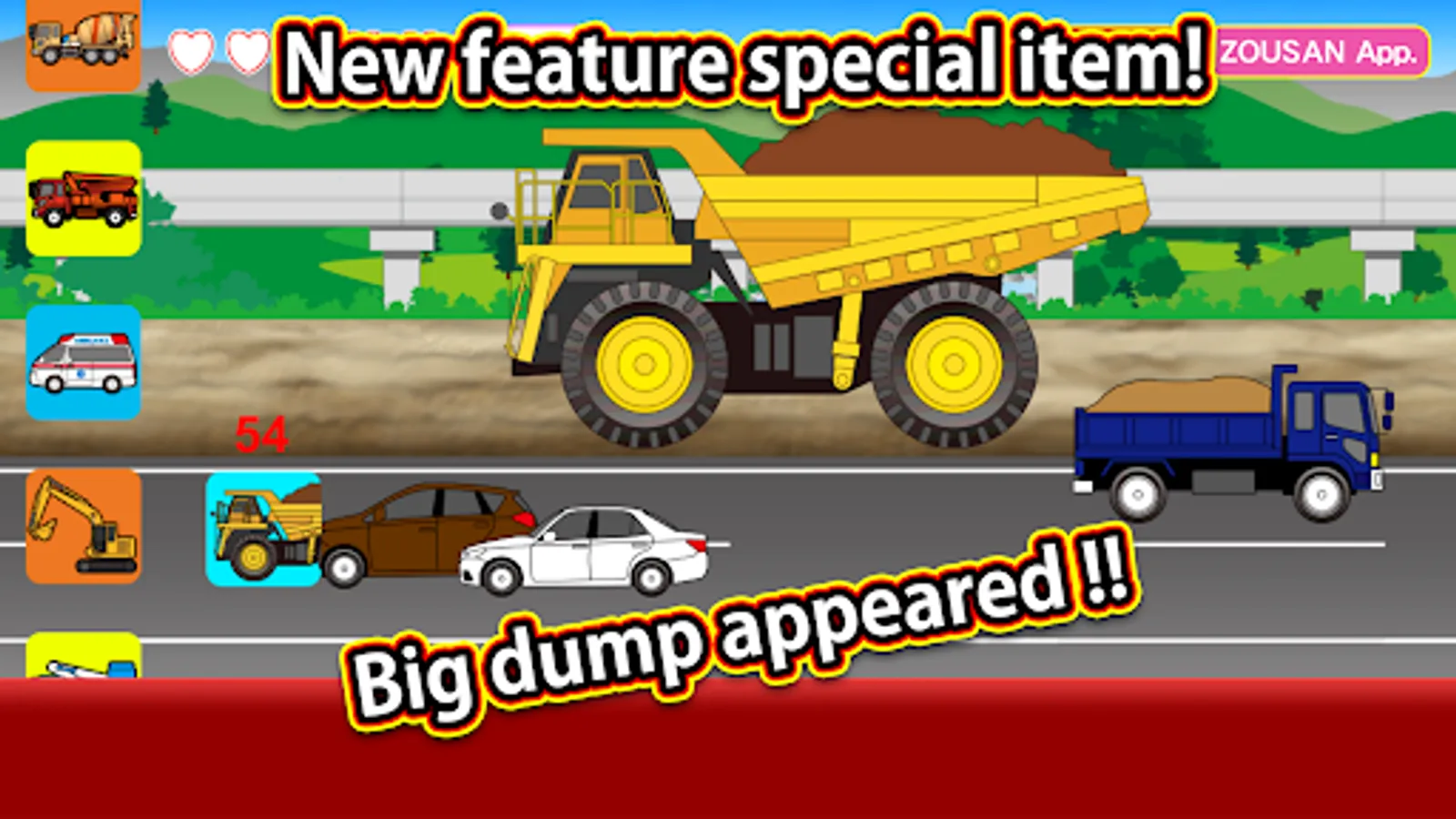 4. "Big dump truck button" A big dump truck will appear. Tap to drain the soil from the loading platform.