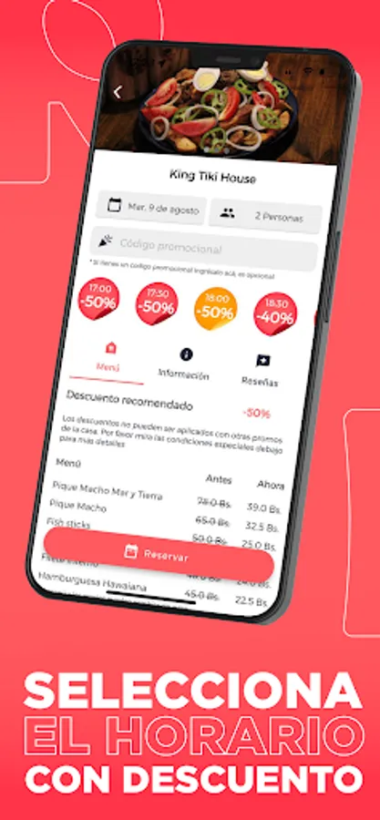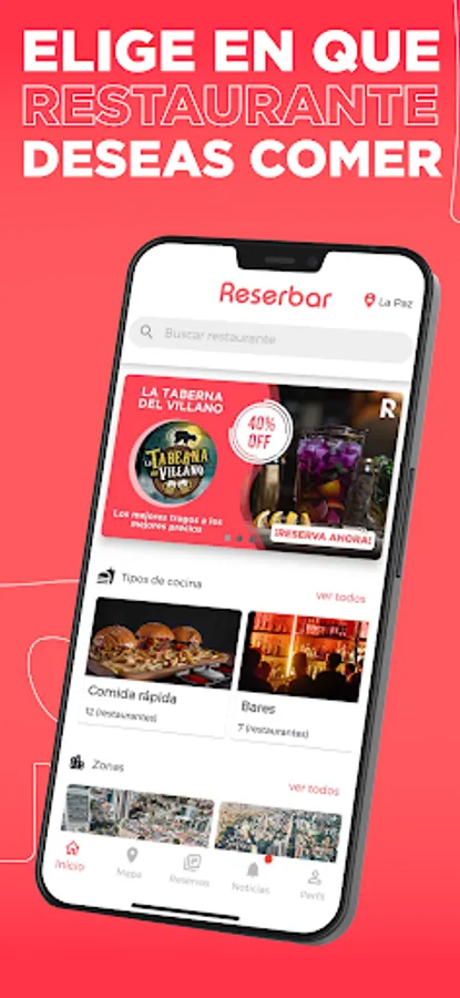 Reserbar is an app that allows you to obtain discounts of up to 50% in restaurants in Bolivia by making a reservation for free and simply.