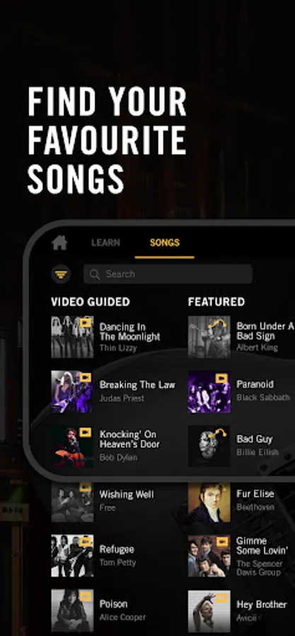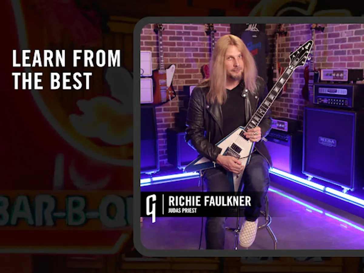 The Gibson App is a guitar teacher, providing all the tools and lessons you need for your guitar learning journey (electric guitar, acoustic guitar, etc.). It offers a fun and educational experience to keep you motivated on your guitar learning journey!
