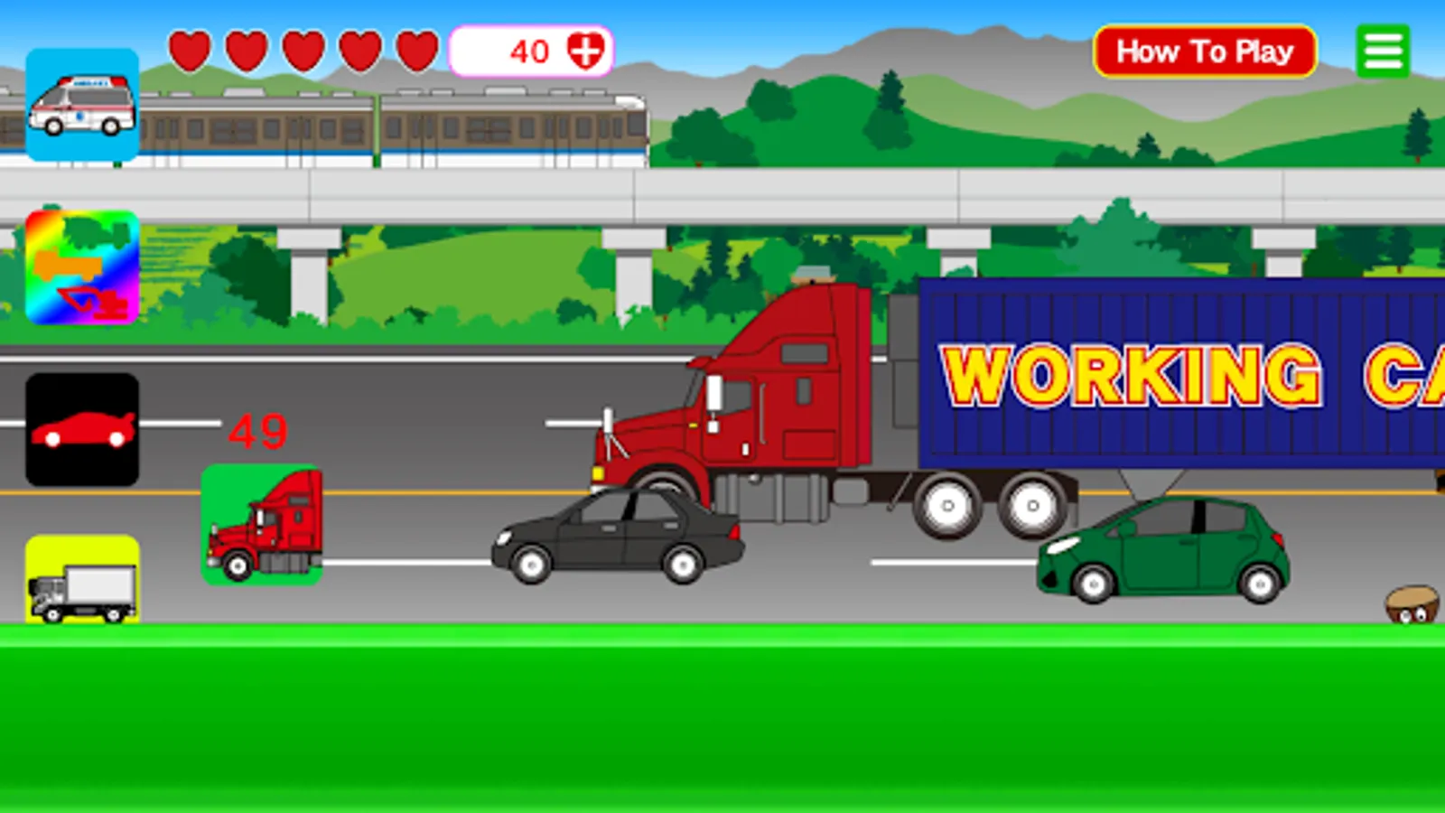 Hearts will increase when you tap a car or various objects for a certain period of time.
