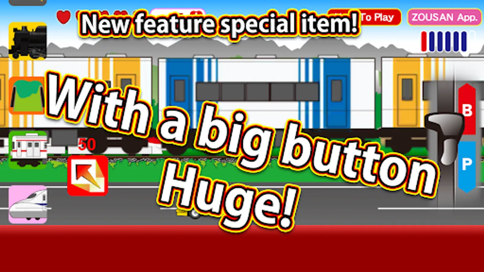 1. "Big Button": Tap this icon to make trains and bullet trains huge in two stages.