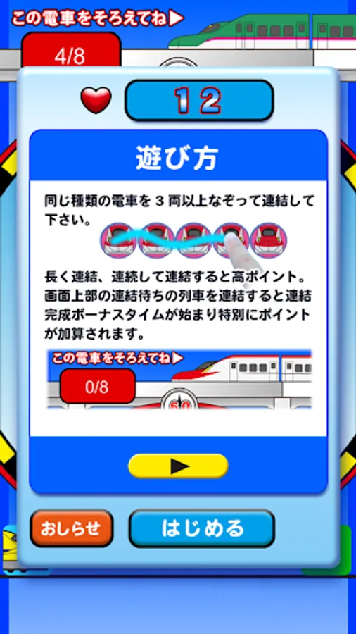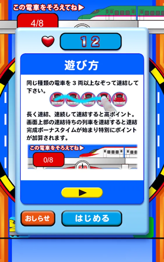 Puzzle game to trace the capsule of the Shinkansen / train and connect it