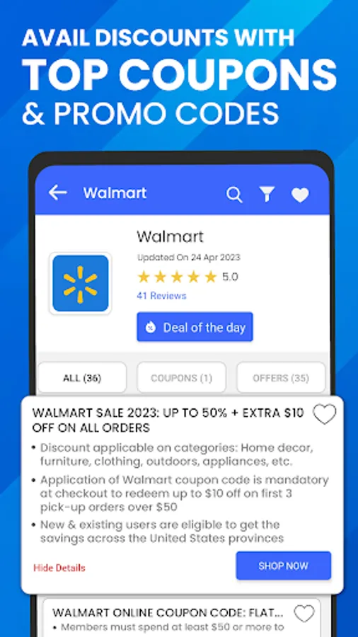 Deals of the Day: Browse the best offers of the day quickly to enjoy instant discounts on desired brands and products.