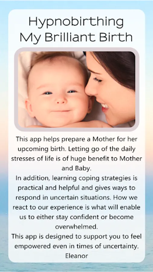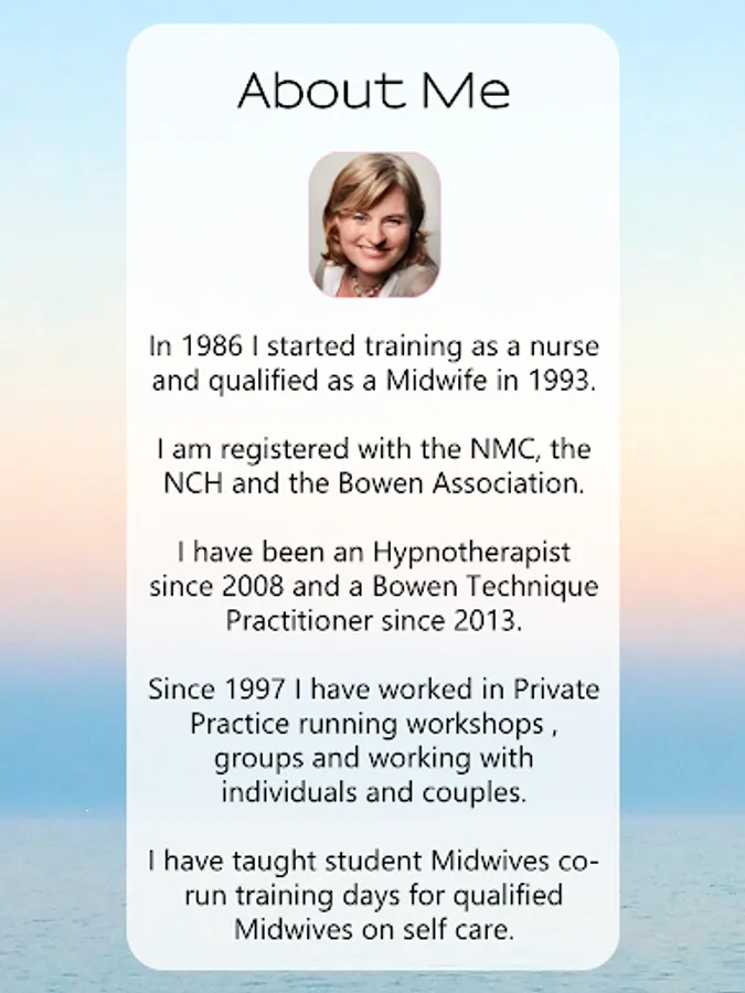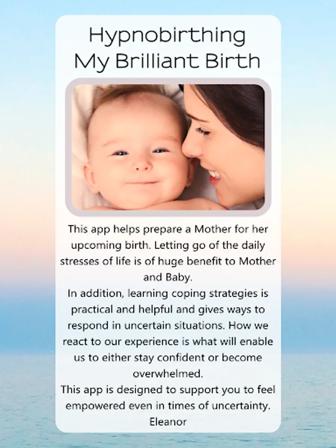 Created by an experienced practising Midwife and Hypnotherapist for you to listen to anytime during pregnancy. When listened to regularly it can help strengthen your ability to become calm relaxed and confident .
