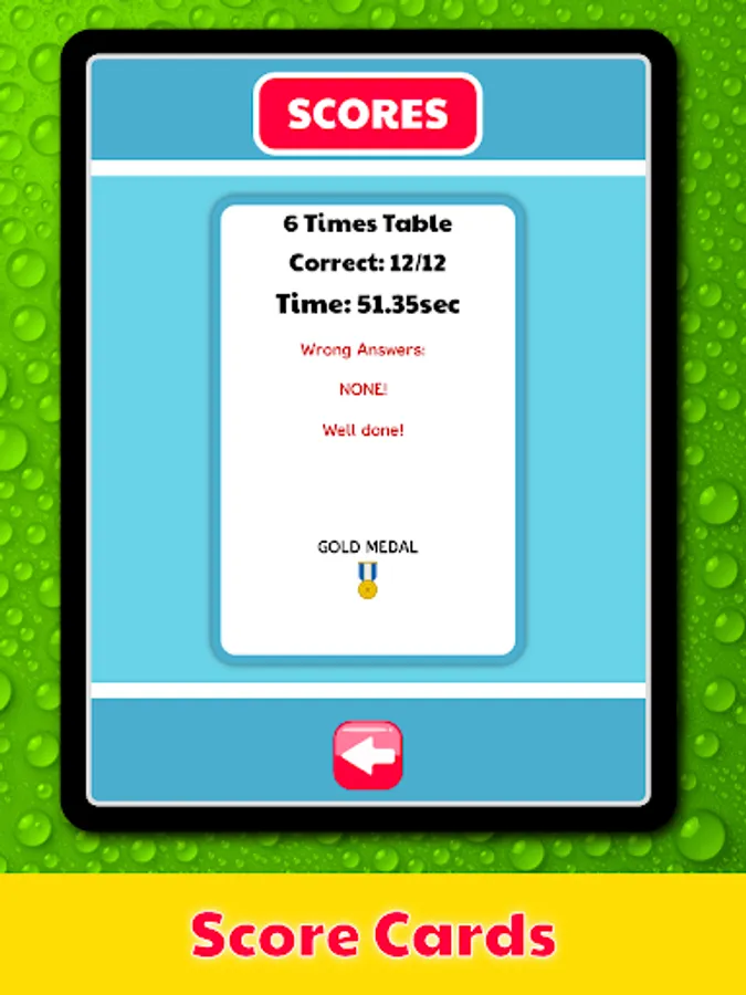 Challenge yourself to earn all 12 gold medals in the practice mode. Proceed to the Speed Grids to show off your skills and test your speed and accuracy. Challenge friends to get the best time and become a Master of Multiplication!