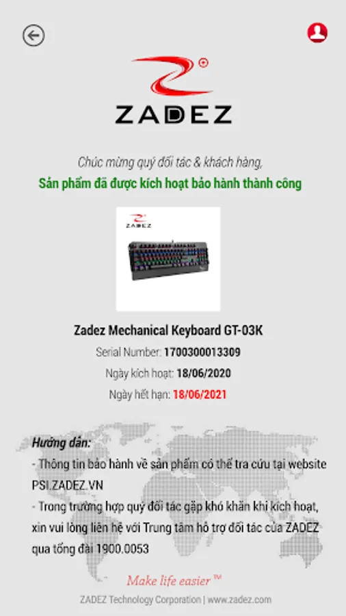 - To activate product warranty, please do it at PSI.ZADEZ.VN website (zPartner app only supports information search)