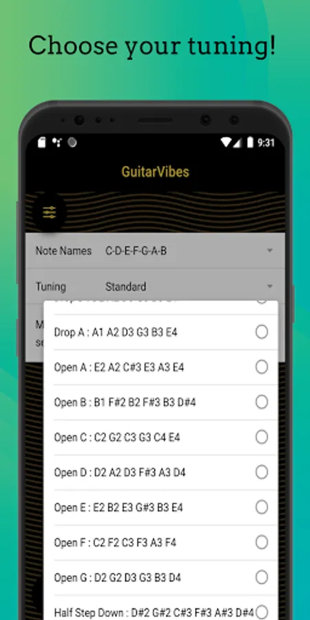 GuitarVibes is a simple, light and efficient Guitar Tuner. Just open the app and start tuning your wonderful Guitar!