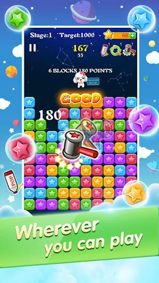 【Creative method: Matching + Puzzle】In this mode,players could find so much fun from it, what they need to do is just fulfill different sharps of star in one Horizontal or vertical line. Once you click the download bottom, you could experience those two types of game play and got dozens happiness.