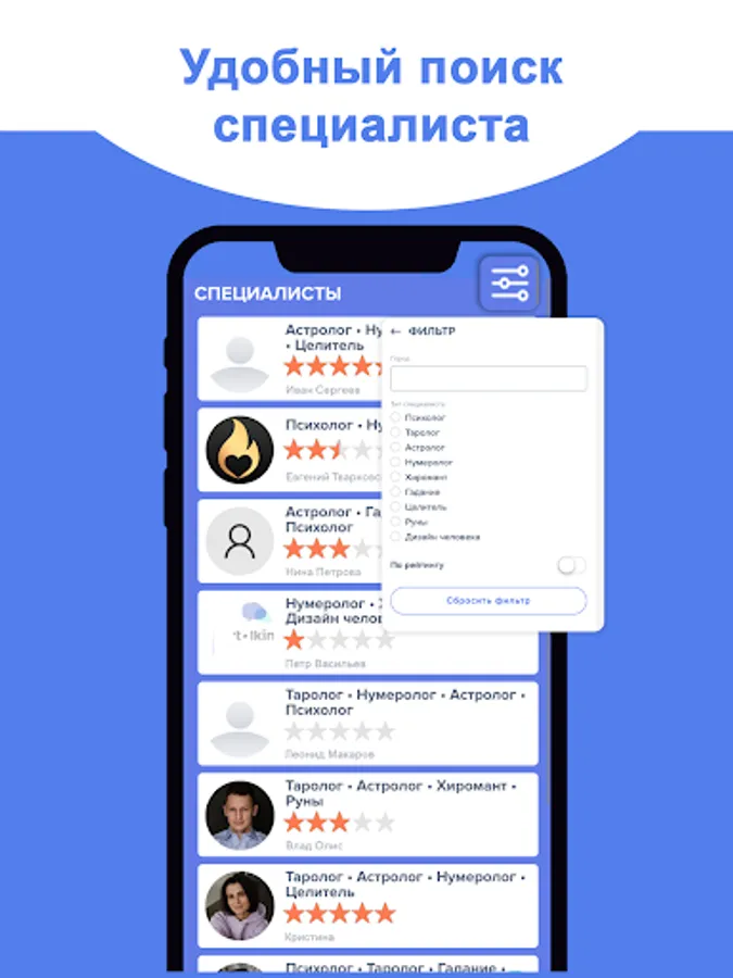 Для клиентов мы создали простой и интуитивно понятный интерфейс. С помощью удобного фильтра можно выбрать специалиста по интересующей специализации, городу или рейтингу. Если у вас есть сомнения в квалификации специалиста, вы можете изучить его профиль, где можно найти сертификаты, дипломы, рейтинг и отзывы других клиентов. Вы также можете задать уточняющие вопросы в чате.
