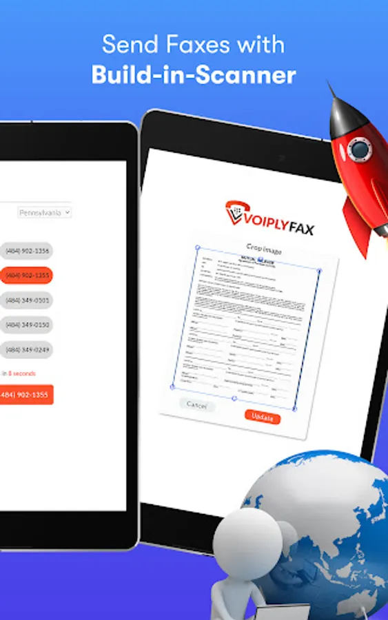 Sending and receiving faxes has become easier than ever with our amazing fax from phone app. Install the faxing app on your android, scan the document you need to send, correct border if needed and send with one tap. You can send fax documents in more than 180 countries using this fax scanner. Send free fax anytime, anywhere.