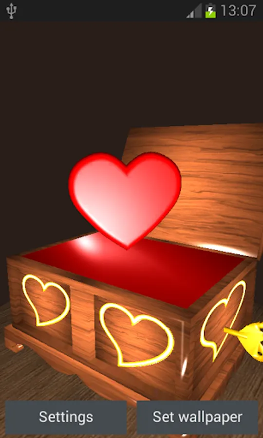 The animated Music Box is opening when you touch the screen, but that's not all, if you touch golden key the music box will start to play love song.