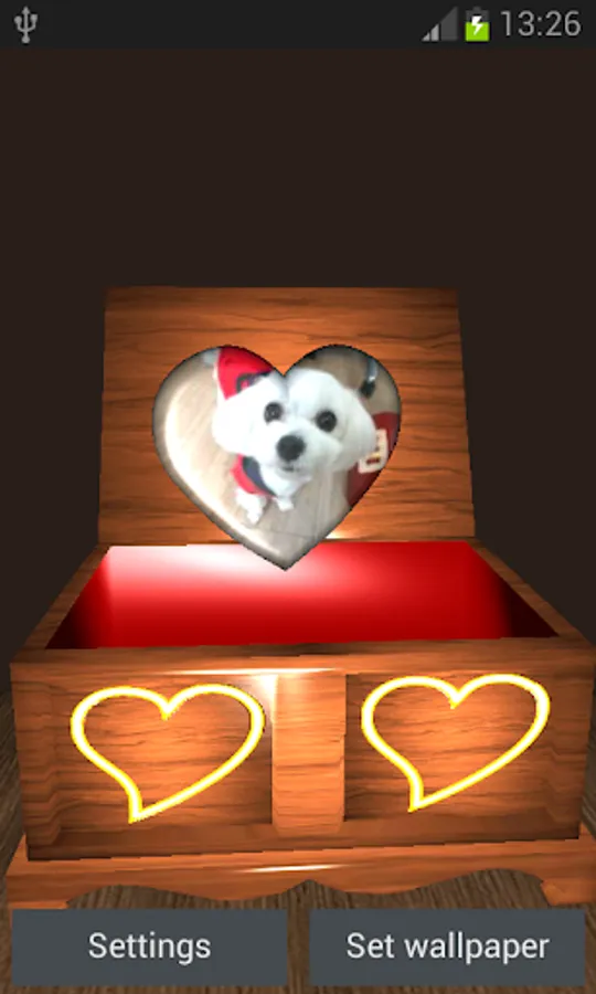 The animated live wallpaper perfect for for Valentine's Day, but not just for this if you have a picture of something or someone you like you can put it on a 3D heart.